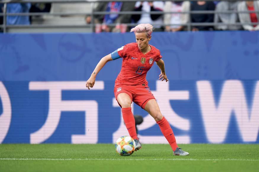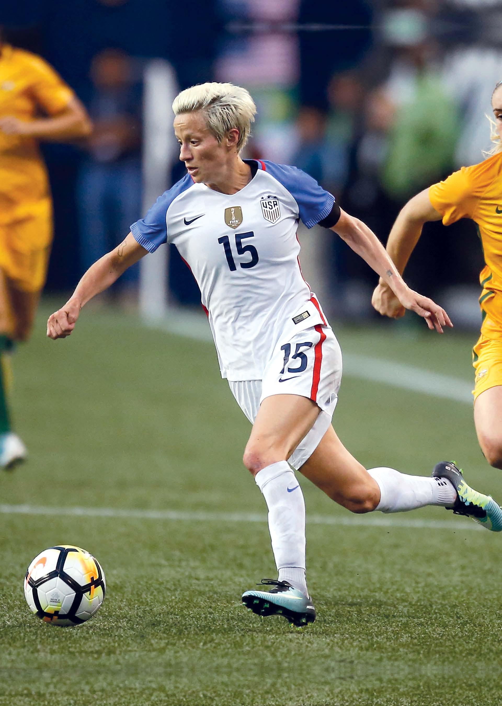 Megan Rapinoe is one of the world’s greatest soccer players. On the one hand she has incredible precision and cunning, in terms of both shooting and passing, and on the other she possesses a brilliant and unique ability to read the game. She usually plays left wing, breaking free and either dashing into the opponents’ penalty box or delivering razor-sharp passes to her team’s strikers. Rapinoe’s many talents are on display whether she finds herself on the left or right wing or in any other position, and she often thunders midfield to burst open the defense or direct the flow of play to the flanks.