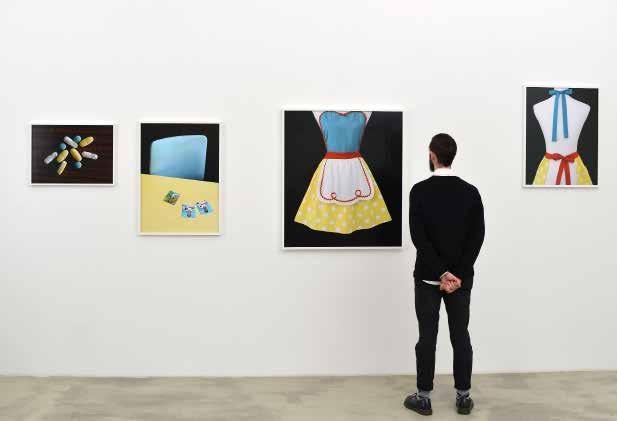 VB: Photography has always played a big role in my life, even before my studies. As a child, I emigrated with my mother from and immateriality. I connected images beyond language and context on a purely visual level. With this method, I wanted to visualize a random cross section of our current image culture. The image search algorithm became an important coworker, as it does not distinguish between supposedly important and unimportant content, as a human would. The machine filters emotionlessly for image analogies such as shape, color, and texture. This reveals a range of images beyond a content-related context that makes sense. So that was my interest: to look at these disconnected representations of our globalized world as purely visual phenomena. What quickly struck me was the frequency of product images. It is not surprising, however, that in a capitalist system, images are primarily advertising messages. opposite Viktoria Binschtok, Snow White Apron Cluster, from Cluster (2014–2017), 2014, four digital C-prints, 100 × 88 cm; 80 × 58 cm; 74 × 58 cm; 43 × 60 cm. Image courtesy of the artist and KLEMM’S, Berlin opposite