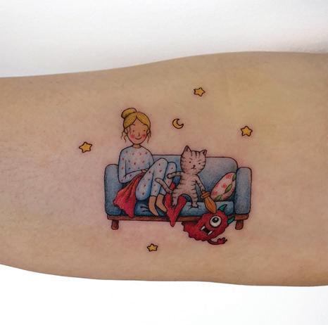 Istanbul-based artist Ahmet Cambaz designs tiny tattoos that are as skillfully created as they are delightfully adorable. He started his career as a cartoonist and worked for local comic magazines for 7 years. As a former cartoonist, Cambaz finds inspiration in illustration, applying the artistic techniques he learned during his drawing days to each piece of body art. Cambaz s choice of predominantly using black ink, with sometimes a splash of color, gives his tattoos a simplicity which directs the eye towards the extraordinary detail in his work.