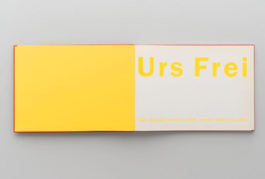 two artists were chosen for the Venice b iennale: Helmut f ederle for the pavilion and Urs f rei for the Chiesa s t. s tae. Urs wanted something ‘simple’, so I took inspiration from the landscape format of children’s books. t he cover was bright red with big yellow letters reading Urs Frei. Urs Frei