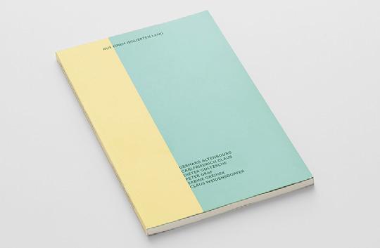 When Gisele l inder opened her gallery in e lisabethenstrasse in b asel, she asked me to design the invitations for her. I am still doing them after twentyseven years, and they are still being exquisitely printed by Peter s chleiss. f or the twentieth anniversary of her gallery, Gisele did not present an artist but rather all of her invitations. s he pinned them in a line at eye level around the walls of her gallery. It looked lovely, all the colours and typography. I was really touched. s he also asked me to do a few catalogues. t his one was for a group show in b elfort, f rance. t he artists each had eight pages at their disposal. t hese were bound singly for them but also together in a catalogue with a foreword.