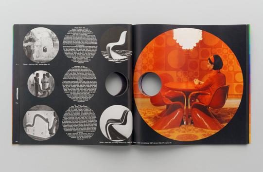 After taking a degree in graphic design, I couldn’t find a job. I knew too much or too little; I was too old to be a newcomer; I had the education but no expe rience — a woman in a field dominated by men, a) with a child, which the men considered a handicap, and b) my Danish ways. b ut then the innovative Danish designer Verner Panton asked me to do some freelance work, to colour in textile and wallpaper repeats, which turned into doing this book with him it was exactly what I wanted. It had to be finished in time for a major retrospective in Copenhagen on the occasion of his sixtieth birthday. l ater the exhibition came to b asel, where it was housed in a circus tent. t here were no computers in those days. f irst we had to trawl his archives for photographs, slides, drawings and documents. We there were two of us, two graphic designers o le Herskind from Denmark and I outlined sections of the photographs on tracing paper and sketched the layout on graph paper, not really much different from working with computer programmes except that it took a lot of table space. t he book came to life in the enchanted house where Verner lived with his wife m arianne and with all of the prototypes he had designed. It was home, studio and showroom all in one. t he book was presented as a gift at the opening. t he first edition was huge, 10,000 copies. s adly, he died in 1998, the same year the book was reprinted, and didn’t live to see the revival of his products.