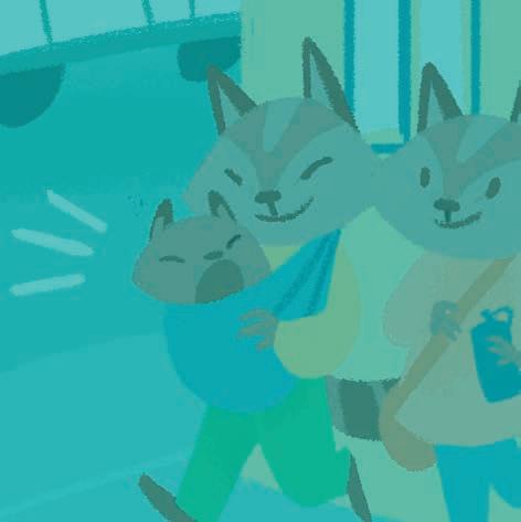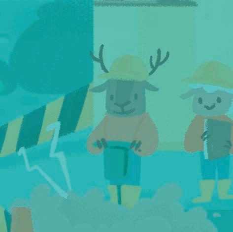 MORNING IN MOSSYLEAF GLADE . WANT TO SLEEP IN, BUT IT’S TOO NOISY! LOOK AT THE ANIMALS COMING AND GOING AND COMPLETE THE MISSING PARTS BY PLACING THE STICKERS WHERE YOU THINK THEY SHOULD GO.