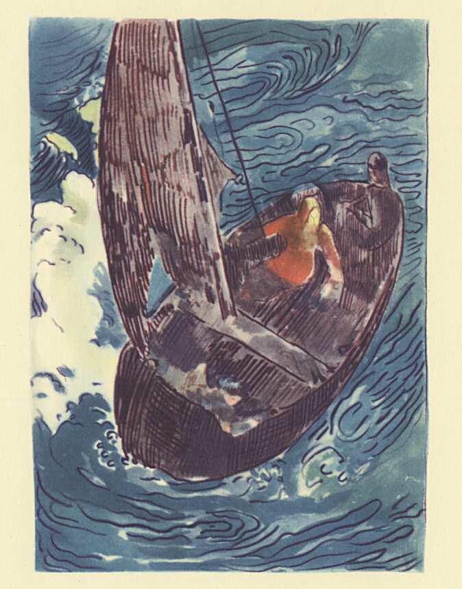 And in the roadstead an unusual stir of boats with orange sails, upon the blue sea frequently crossed by the silvered ripples from the line of the reefs. T he inhabitants of the neighbouring islands were coming in, each day, to be present at their king’s last moment, at the final taking-over of their islands by the French. For their voices from on high brought them war ning –– (ever y time a king is dying, their mountains, they say, have sombre patches on some of their slopes at sunset).
