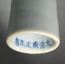 Imperial reign marks can appear in either four or six-character form, with ‘period made’ added to the dynasty title and the title of the reign, in the case of the latter. The first two characters refer to the dynasty. Da Ming, ‘Great Ming’ means the piece is from the Ming dynasty (1368- 1644) and Da Qing, ‘Great Qing’ means the piece is from the Qing dynasty (1644-1911). The second two characters refer to the reign title and the third set of two characters read nian zhi, or ‘years or period made’.