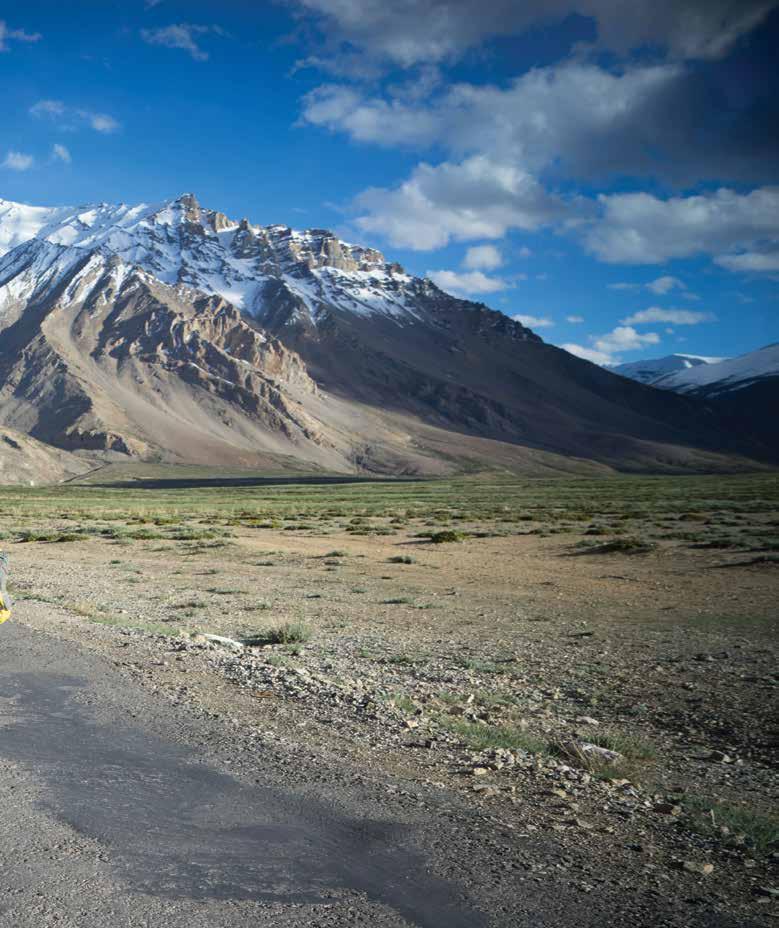 In the following weeks we cruise across the Himalayas. Before we climb the 3,530-metre (11,575-foot) Zoji La Pass, we ride through Drass, the coldest place in India. In the winter it easily hits minus 23 °C here. Yet we still put factor 50 on our noses. My fingers and toes tingle with the cold. When a Tata Truck misses me by a whisker, I’m warm again for at least half an hour.