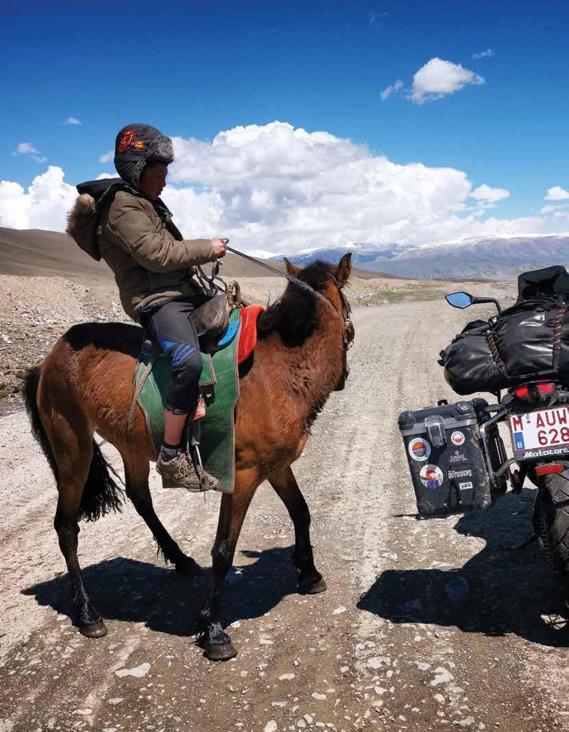 Fortunately, our wheels keep us focused. Although we’re not always in our comfort zone. We’ve been living out of our panniers for 70 days and wearing the same handful of clothes all that time. On the road, the icy wind keeps us alert, and each of the five climatic zones we cross through introduces itself with its own soundtrack and scent. In the evening we pitch our tent next to the horse-watering hole of a campsite that has been fully booked for months. We continue with our stubborn approach to travel – no making of plans or reservations – but this is the first time we need a pass to be allowed to see the great outdoors.