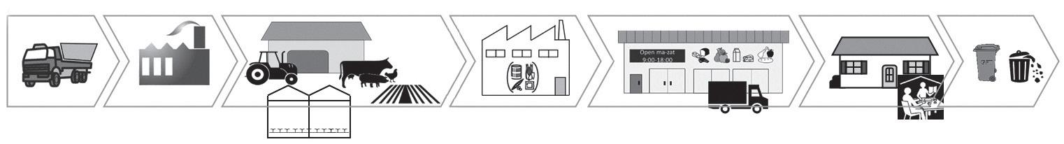 Figure 1: Life Cycle Assessment calculates the total environmental and climate impact of a product. It starts with raw material extraction and transport, and ends with consumer use and waste disposal. Per “link” in the chain, an LCA measures the amount of water, energy, land, metals, minerals and fossil resources used, as well as the emissions produced. This gives a good estimate of how the entire production process affects human health, the quality of our ecosystems and the depletion of non-renewable resources. © ILVO