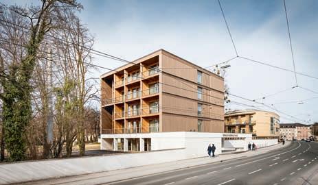 The four constructed buildings include the highly-acclaimed House with two Columns in Wilen (2014) and the Rosengarten student accommodation in Zurich-Wipkingen (2020), with its raw materialisation and doublestorey halls and loggias.