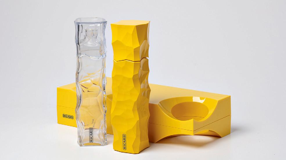The Ricard Duo box set, designed by architects Jakob and Macfarlane, pairs bottle and carafe in a single case to symbolize the unbreakable and harmonious alliance of water and pastis.