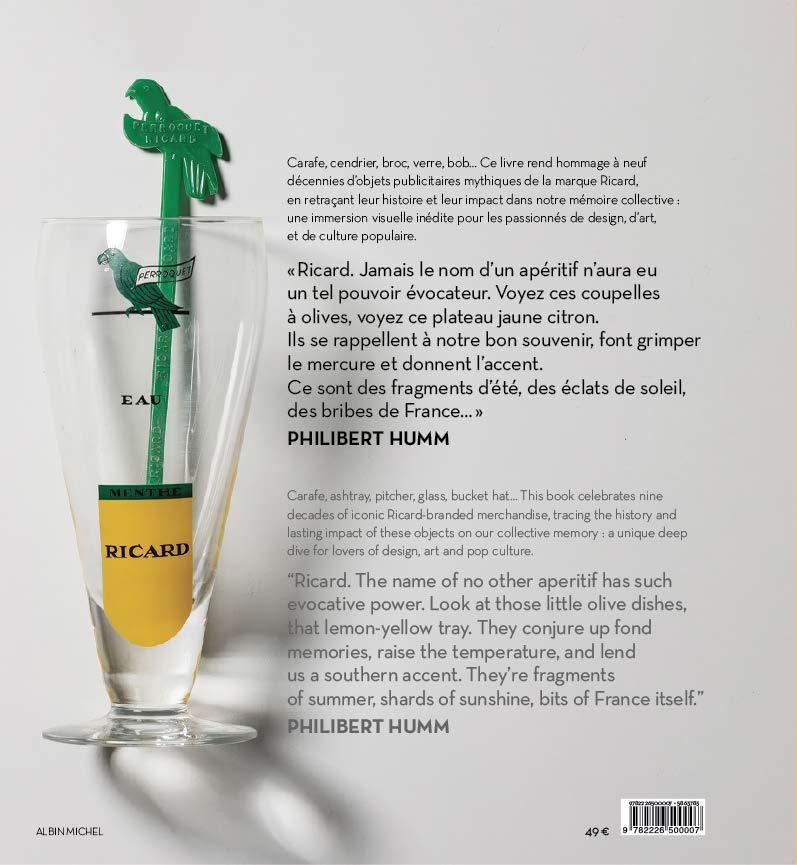 Les objets Ricard n’ont pas tous été conçus par des designers, ce qui ne rend caduque ni leur caractère fonctionnel ni leur éventuelle dimension esthétique. Posés sur le zinc, ces objets forment une étonnante farandole – à l’origine une danse populaire provençale. En dresser la liste exhaustive tient de la gageure. Il n’est que d’en citer quelques-uns : calendrier, porte-œufs, thermomètre, sucrier, seau à glace… Ne manque que le son du galoubet et du tambourin pour que la fête soit complète !