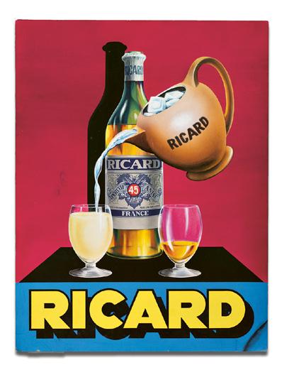 Not all Ricard merchandise was designed by big-name designers, which doesn’t make the items any less functional or potentially beautiful. Spread out along the zinc bar top, these objects form an astonishing farandole2 Listing them all would be quite the challenge, so a few examples will suffice: calendars, egg cup holders, thermometers, sugar bowls, and ice buckets... All that’s missing is the sound of the traditional Provençal flute and drum to complete the party!