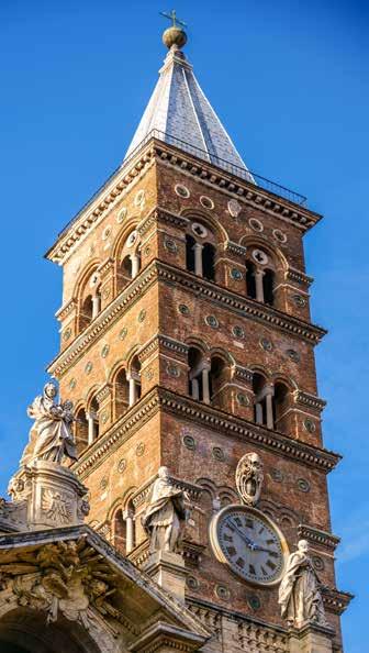 Facing, on the top: Romanesque-style Bell tower that belongs to the Papal Basilica of Santa Maria Maggiore, 1445-1483, 75 metres high.