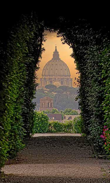 Above: Saint Peter’s dome seen from the famous key-hole on the Aventine Hill.