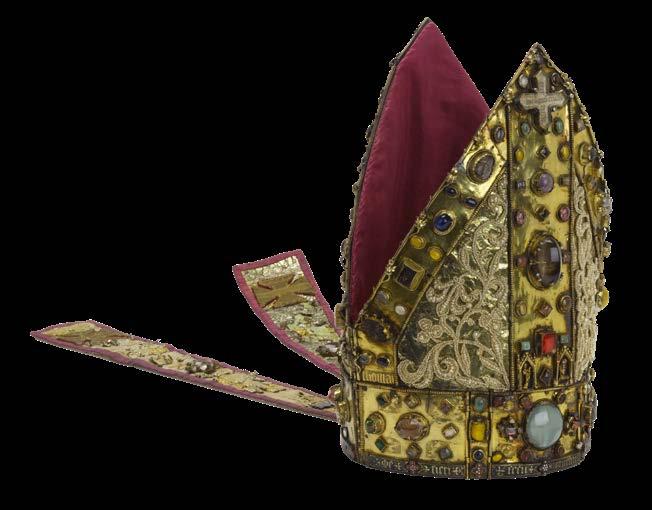 Ɉ The Cornelius O’Dea Mitre and Crosier Cornelius O’Dea was consecrated Bishop of Limerick in 1400 and resigned in 1426. He died in 1434 and was buried in Saint Mary’s Cathedral. The jewelled mitre and crosier, mostly made of silver, were made to the order of Cornelius O’Dea in 1418. Only the mitre bears the engraved signature of the maker: ‘Thomas O’Carryd, artifex facients.’ Thomas O’Carryd may be Thomas O’Carty,