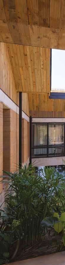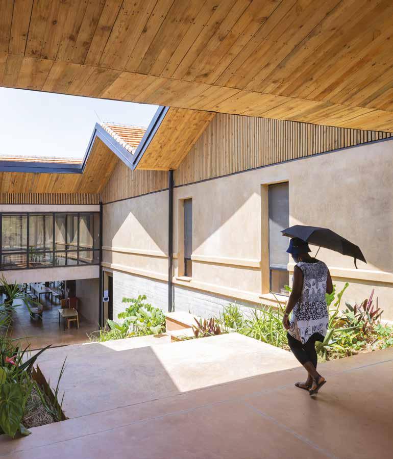 First-, second-, and third-year students live the ideals they are learning by enjoying locally grown and prepared food. The structure of the cafeteria and the rest of the campus is composed largely of biogenic materials, including rammed earth, compressed earth blocks, wood, stone, and terra-cotta, which are durable, replicable, and repairable.