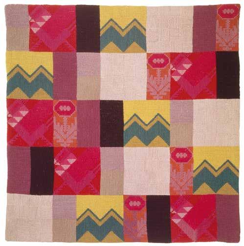 Kissenplatte / pillowcase, 1916, Wolle auf Kanvas, Kreuzstichstickerei / wool on canvas, cross-stitch embroidery, 53 × 52 cm