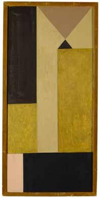elided an essential aspect of Sophie Taeuber-Arp’s œuvre: that her works, whether of fine or applied art, followed one another in a connected sequence. With this interpretation, Hans Arp initiated the image of an artist who proved herself with serene perfection across various art forms and independently from generic hierarchies. Arp did not control this view solely by means of reordering her works. Sophie Taeuber-Arp had rarely dated her works, which made possible a posthumous reconsideration of their time of origin. Arp, to whom the derogatory distinction between “low” and “high” art was foreign—in the run-up to the Dada movement, he had already found in textile designs an alternative to traditional painting—was not shy about ascribing to objects from the field of applied arts a new meaning as autonomous works. Probably the most contradictory example of such “revaluation” is the painting Triptyque 3 (Triptych), dated to 1918 in the catalog (fig. 1). In his handwritten draft of the catalogue raisonné, 4 Hugo Weber added “folding screen” in brackets to his description of Triptyque, making clearer the work’s actual purpose; this note was redacted from the final version. This was probably because two of the three painting panels were shown in the second series of the exhibition Réalités nouvelles in 1939, which presented abstract art after 1920. The early dating in question has been retained. A further example is the set design for Carlo Gozzi’s The Stag King; Taeuber-Arp was responsible for the marionettes and scenography for the 1918 Zurich production. In a letter from the end of August 1949, Hans Arp asks Hans Richter, an old friend from the days of Zurich Dada, to write about Sophie Taeuber-Arp’s marionettes, and to present her sketch for the set design of the palace scene as a work of abstraction: “It is of utmost importance that in this essay you explicitly point out that a background for the scene that I will label for you on the photograph is an abstract picture by Sophie. I am making this request because in Paris, on the occasion of the exhibition Les origines de l’art abstrait, a seemingly endless dispute over the dating of the first abstract pictures has broken out. This one can be proven to have been painted in 1917, and published in the magazine Werk .”5 (fig. 2)