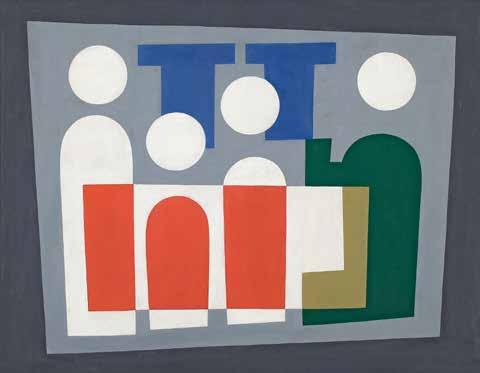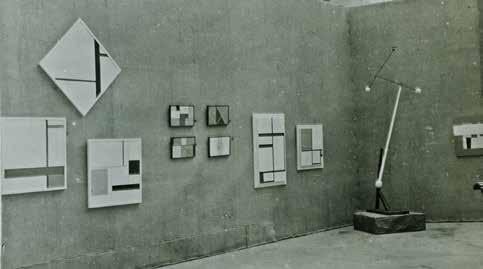 texts and artworks as well as listing recommended reading. 59 At the end of the issue came an announcement for the opening, on April 17, of the first exhibition in Gallery 23, Rue de la Boëtie (fig. 19). The magazine’s second number was also the exhibition catalog.60 Sophie Taeuber-Arp was represented by three works, two of which were titled Personnages, and one Composition. On the basis of exhibition photos,61 the above-described paintings Kaffeehaus and Personnages can be identified. It is plausible that the artist would have given both paintings the title Personnages due to their closeness in terms of motif. In the photos we currently have of the exhibition, no other pictures by her can be seen. The Composition, which was only finished shortly before the opening, 62 remains impossible to identify for now. The more abstract version of Personnages was hung immediately next to works by Mondrian and Vantongerloo. The Kaffeehaus shared a wall in a different room with works by Léger and Pevsner; Seuphor later declared it the “most beautiful wall in the exhibition.”63