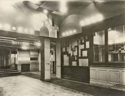 partment haben sich sieben Fenster (Abb. 11) und einige der Entwürfe erhalten.35 In der Gestaltung des bunten Glases konzentrierte sich die Künstlerin auf Quadrate und Rechtecke, die sie mittels der Bleiruten in einer unregelmässigen Abfolge strukturierte. Die beiden kleineren, quadratischen Fenster, in denen kräftige Blau- und Lilatöne dominieren, lassen noch äusserst reduzierte Körperformen erkennen. Historische Fotos der Ausmalung der beiden Räume des Bar-Dancing im Hotel Hannong (Abb. 12) zeigen eine reiche Variation verschieden grosser Quadrate und Rechtecke, in die Taeuber-Arp auch einige anthropomorphe Figuren als imaginäre Gäste einfügte. Rückschlüsse auf die Farbigkeit sind anhand der Fotos kaum möglich, sie muss aber intensiv gewesen sein, erkundigte sich die Künstlerin doch in ihrem Geburtstagsbrief an Arp nach dem «gelbe[n] Teil der Papageienhö[h]le». 36
