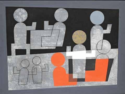 Im Werkverzeichnis ebenfalls auf 1928 datiert ist das motivisch verwandte Bild Personnages47 (Abb. 16). Kennt man das Kaffeehaus, so erschliesst sich die Szene der Personen in Café oder Bar. Die Gestaltung ist abstrakter und farbiger geworden. Die kreisrunden Köpfe haben keine Verbindung zu den Körpern mehr, sondern schweben selbstständig mit unterschiedlich grossem Abstand über ihnen im Raum und rhythmisieren so die Komposition. Tische und Körper sind verschmolzen und werden erst durch unterschiedliche Farbgebungen wieder konturiert.