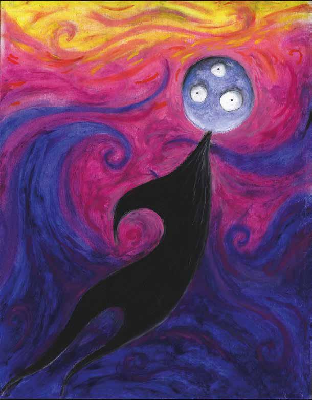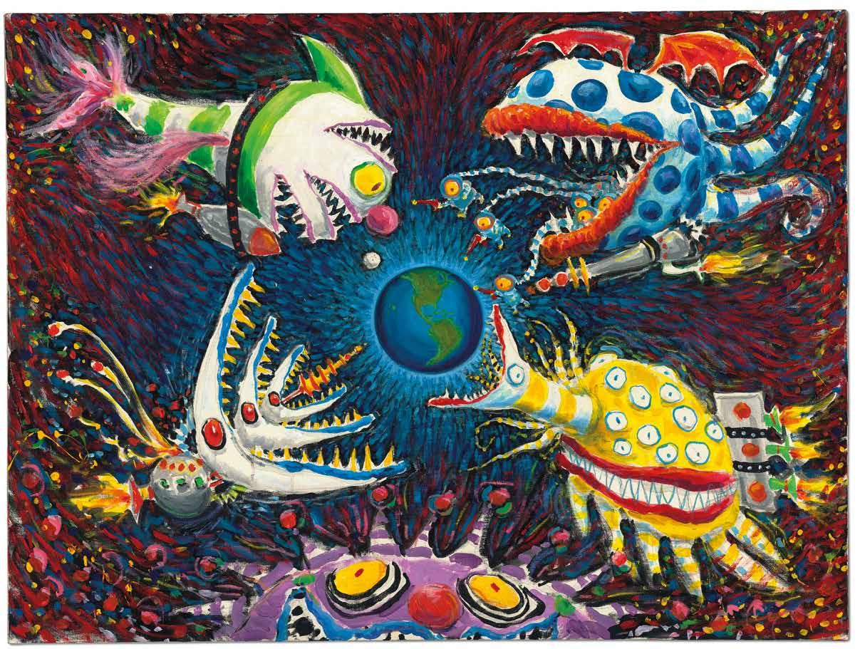 This exhibition draws from Burton’s personal archive and illuminates his complete artistic practice. Whether on a cocktail napkin at a restaurant or on canvas in his artist studio, Burton’s art is subjective and private. He depicts physical reality not as it appears but how it is felt through a distortion of perspective and the human form. His figurative works could easily be men, women, or creatures. This wildly imaginative inner dialogue stems from Burton’s rebellion against conformity and alienation from his physical environment. Growing up in Burbank, California, a suburban neighborhood that arely changed, he found inspiration from classic illustrators, stop motion animators, and Japanese kaiju films alike. olidays also served as an early influence. During these times of the year, Burbank came alive with festive decorations on houses and lawns.