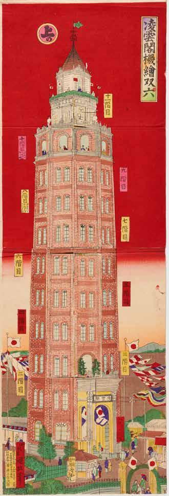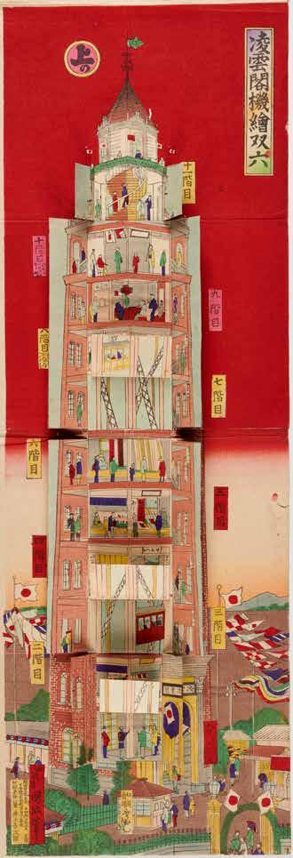 Utagawa Kunimasa IV, Ryōunkaku Tower Game (Ryōunkaku kikai sugoroku), 1890 Colour woodblock print with collage elements, 72.7 x 25 cm