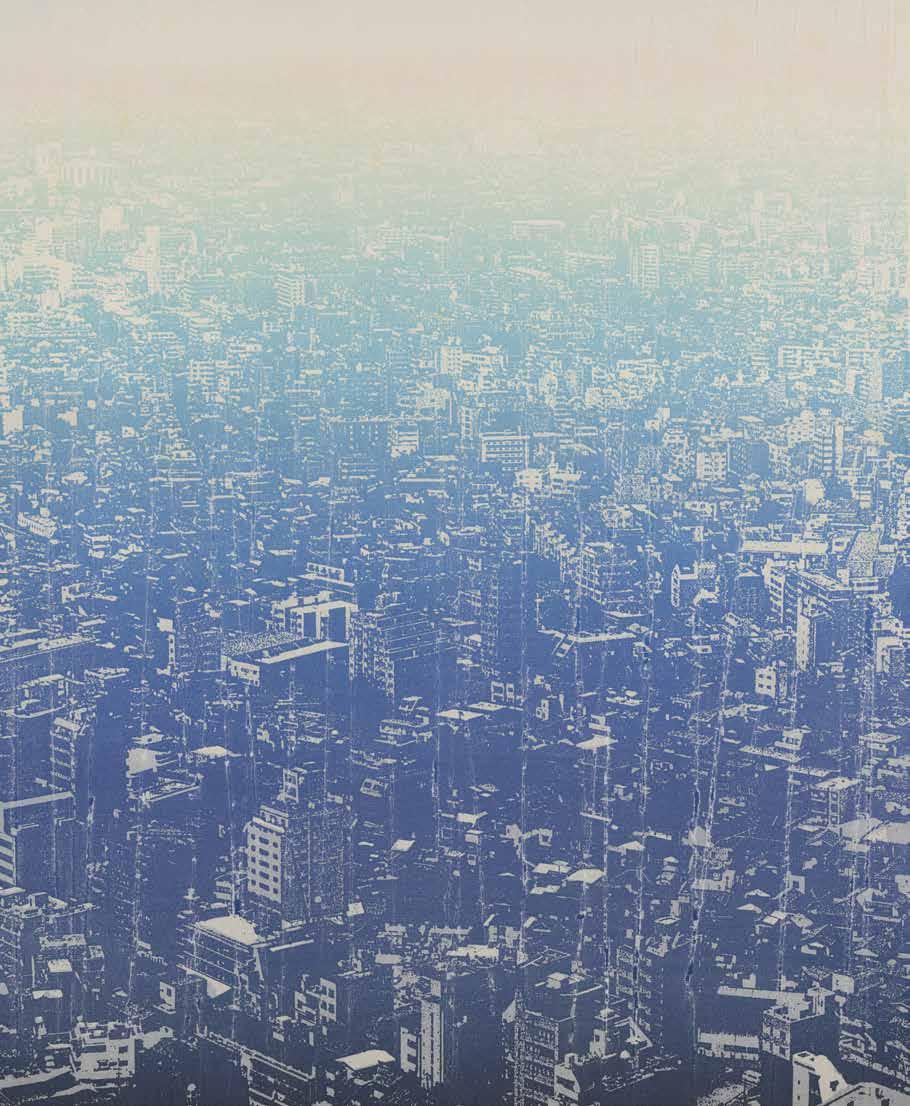 Celebrations of place in Japan have developed over the centuries, from religious through poetic to pictorial representations of various kinds.23 Some ‘famous places’ supplanted others, but more often than not site-specific associations continued to be added over time; new landmarks were simply grafted on to the pre-existing canon of culturally significant places, acknowledging the inevitability of change and allowing a range of creative approaches. This cumulative process is beautifully illustrated in the work of Yamaguchi Akira (b. 1969), whose intricate paintings and prints of Tokyo seemingly combine past, present and future, often incorporating elements of pop culture and science fiction-like fantasy. An artist classically trained in traditional Japanese painting, Yamaguchi draws upon the meisho tradition, whether in prints referencing Hiroshige’s views of Edo (p.41), or in works recalling seventeenth-century screen paintings of famous sites in and around the city, depicted in classic bird’s-eye view and with gold clouds dividing scenes in multiple perspectives and multiple scales (p.233). For Yamaguchi, ‘cities are made up of the accumulated memories of people who have the power to transcend their own time’.24