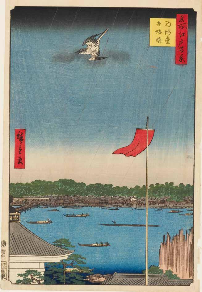 Utagawa Hiroshige, Komagata Hall and Azuma Bridge (Komagata-dō Azumabashi), from the series One Hundred Famous Views of Edo (Meisho Edo hyakkei), 1857