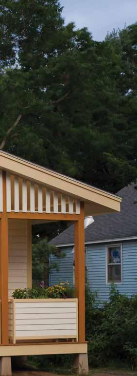 There is a simple elegance to the house. The front porch shelters the living room from the western sun. Planters are finished with the same clapboard siding used on the house. The street level includes an entry