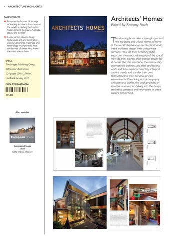 SALES POINTS ✚ Features the homes of a range of leading architects from around the world, including the United States, United Kingdom, Australia, Japan, and Europe ✚ Explores the interior design techniques, art and decorative pieces, furnishings, materials, and technology incorporated into the homes of those who know the most about them