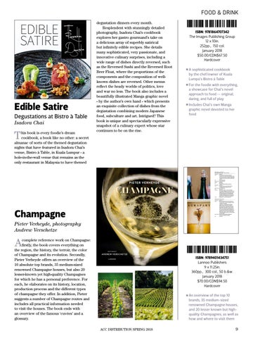 degustation dinners every month. Resplendent with stunningly detailed photography, Isadora Chai’s cookbook explores her gastro gourmand’s take on a delicious array of superbly satirical but infinitely edible recipes. She details many sophisticated, very passionate, and innovative culinary surprises, including a wide range of dishes directly reversed, such as the Reversed Sushi and the Reversed Root Beer Float, where the proportions of the components and the composition of wellknown dishes are reversed. Other menus reflect the heady worlds of politics, love and war no less. The book also includes a beautifully illustrated Manga graphic novel - by the author’s own hand - which presents an exquisite collection of dishes from the degustation combining modern Japanese food, subculture and art. Intrigued? This book is unique and spectacularly expressive snapshot of a culinary expert whose star continues to be on the rise.