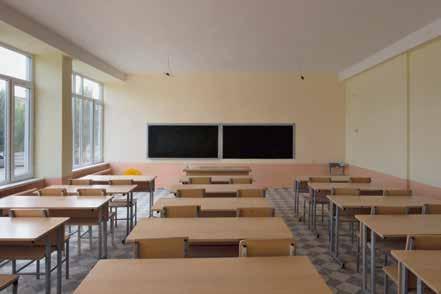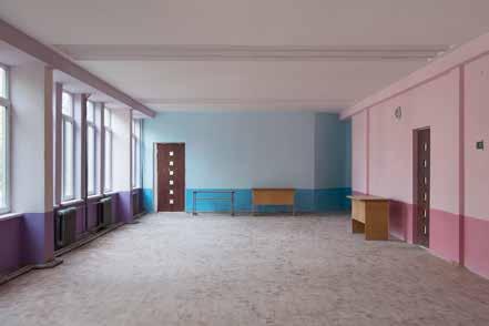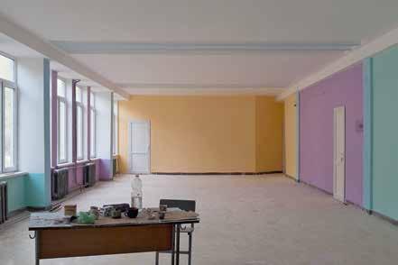 › Interiors of the school for 1176 students during and after the recent renovation, 2016