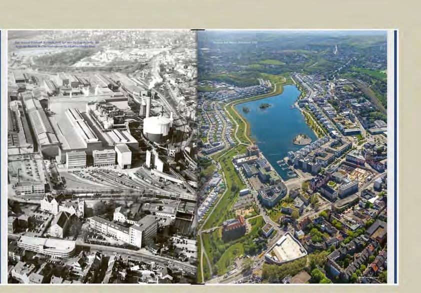 Numerous photo spreads present the region of the Emscher river from its source to its confluence with the Rhine, demonstrating the transformation of the river landscape through a combination of historical and contemporary images. The structure of the publication traces the settlements along the river, foregrounding local developments and emphasizing the unique features of the individual communities and cities.