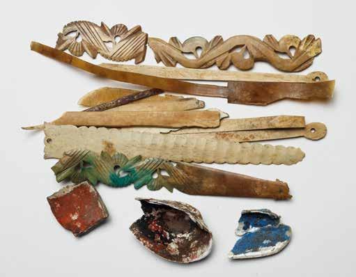 The intensity of salvage (meaning reuse in the same activity) and loop-closing (meaning inter-trade feedback) across the early modern world has left few of the period’s by-products extant today. Those that do surface, such as a cache of fan-making supplies from seventeenth-century London, tend to be declared failures: the struts were over- or under-cut, hence discarded (fig. 2).32 But what makes us so sure that, if workshop waste comes up in aggregate, it must have fallen down in the same quantity, produced by the same hand, or even in one go?33 Maybe early modern craftspeople, like twenty-first-century scientists, kept at least some of their null results around for reference, offering up the too-thick and the too-thin as cautionary tales for their apprentices to study.34