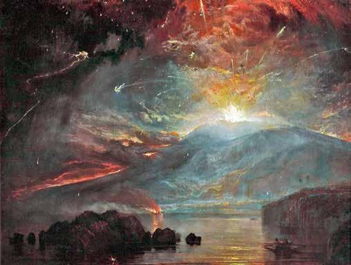 of depicting an eruption alongside moonlight and water. As I have discussed, such images were also deeply marked by the practices and consequences of industrial mining. Michel Serres once observed that Turner’s paintings, especially those depicting the operations of steam power, replicate the effects of combustion in their conversion of pigmented materiality into light and energy.20 Turner’s vortex-like landscapes featuring steam ships bear witness to the early stages of what Nathan Hensley describes as the suicidal inferno of fossil capitalism.21 His eruption scenes could themselves be understood as portrayals of the combustive protocols of industrial modernity. Silhouetted in the right foreground of the painting, a modest rowboat contrasts the explosive power of the distant eruption with the declining importance of traditional sources of energy and labor.