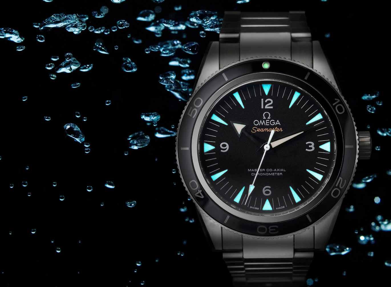 Close-up of an Omega Seamaster 300 Co-Axial model.