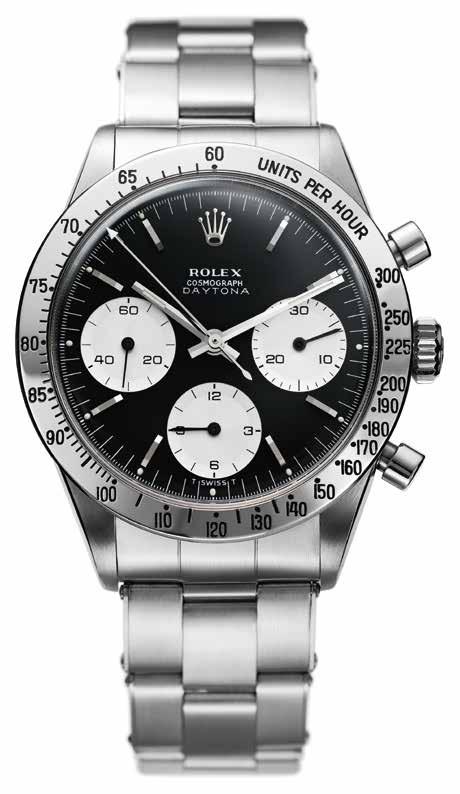 crown, dial with the “Oyster” script (a way of announcing its improved water resistance) and a bezel with a black Plexiglas insert with the white tachymetric markings. That year, the Daytona name also came into play, used for the first time in advertisements destined for the United States. At the request of the US Rolex distributor, it was then given to certain models reserved for that market, paying tribute to the legendary Daytona 24 Hours endurance race, held from 1966 on the Daytona International Speedway tri-oval at Daytona Beach, Florida.