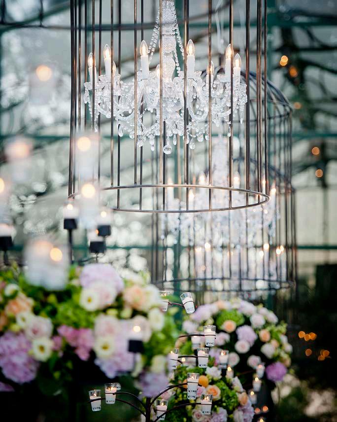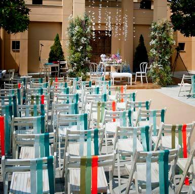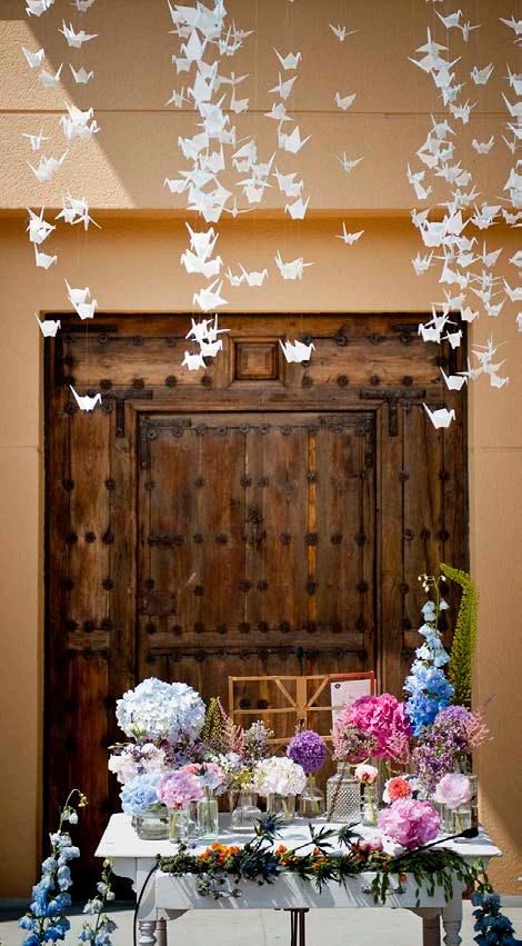 Origami birds, according to a legend, make all wishes come true. That’s why they were placed over the bride and groom and the officiator, hanging from a transparent surface to simulate their flight over the ceremony.