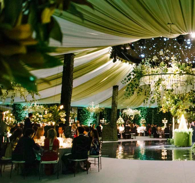 Guests enter the tent as if going into a secret garden. The tent fabrics and the LED ceiling emulating a starry sky produced a magical atmosphere.