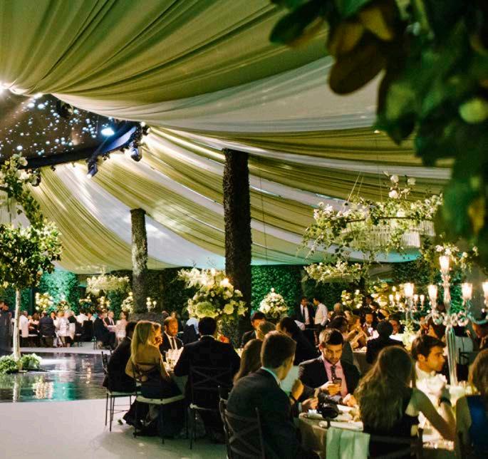 With the latent inspiration of A Summer Night’s Dream, it was intended that the guests, even though they were inside a tent—something necessary in the north of Spain— would feel like they were in a secret garden. They entered through curtains adorned with garlands of magnolia.