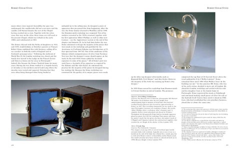 13. The marketing of his talents did work, for in 1938 he made a fruit stand for Hamilton & Inches of Edinburgh, its design being inspired by Johan Rohde, an associate of Georg Jensen. 14. Just south of Ardarroch, also on the shore of Loch Long but also overlooking the entrance to Loch Goil. 15. For example, the commemorative pieces made for Asprey, which bear the retailer’s maker’s mark. 16. Cyril Shiner (1908-89) was a major British silversmith and industrial designer of the mid-20th century. He had an excellent reputation as a gifted teacher and craftsman. He taught at the Vittoria Street School of Jewellers and Silversmiths in Birmingham. 17. Source: Jean Breckenridge. In ‘Robert E. Stone (1903-90)’, The Silver Society Journal 15 (2003) page 153, it is estimated at 95 per cent. However, no record of the percentage exists. 18. The company’s mark was registered in London. Although it retailed new silver bearing its mark, the silver was supplied by Edward Barnard & Sons Limited and CJ Vanders Limited and others – source, John Culme’s The Directory of Gold & Silversmiths, Jewellers & Allied Traders 1838-1914 (Woodbridge, 1987). 19. D & J Welby moved to Mayfair, but the business closed in 1973/4.