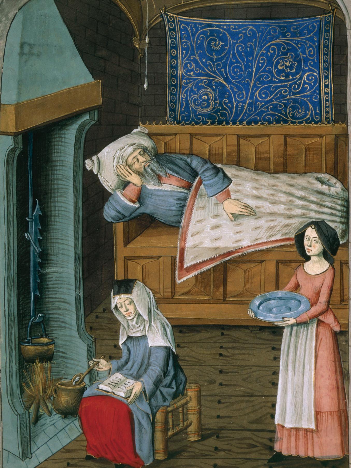 Being a housewife is hard today, and it was hard in the medieval period. Life was difficult, and household tasks were laborious and arduous, with limited technology to make them easier. It is important that we recognize this aspect of life for common women of the time. But the tasks that women were expected to carry out as wives and mothers were important in another sense, as they influenced what society deemed acceptable as work for women. As women moved into the world of work outside of the home, their career opportunities were directed by the work they already did within the home. The greatest opportunities, and the greatest respect, were found in professions that were an extension of the role of housewife: that of provider of food and textiles, of caregiver, and of household manager. This pattern is very much followed in the art of the period, as peasants and professionals are most often depicted