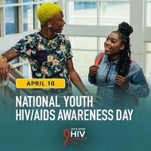 April 10 is National Youth HIV/AIDS Awareness Day, a day to raise awareness about the impact of HIV on young people. Together, we can help young people stay healthy by encouraging HIV testing, prevention, and treatment.