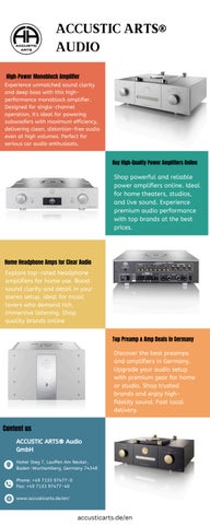 ACCUSTIC ARTS® Audio products have consistently excelled, delivering top-tier Audio Visual solutions for various commercial and ACCUSTIC ARTS® professional products like as, Amplifier, Mono Amplifier, Amp Mono, AMP II,AMP V, DRIVE- I, DRIVE- II,MONO -II,PLAYER-I, PLAYER -II, POWER- I,PREAMP- III, etc.