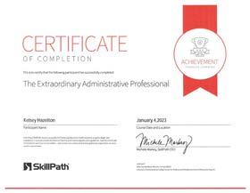 Kelsey Hazelton recently completed courses through SkillPath titled ‘The Conference for Administrative Excellence’ and ‘The Extraordinary Administrative Professional’ course. We look forward to seeing how she implements what she learned into her role.