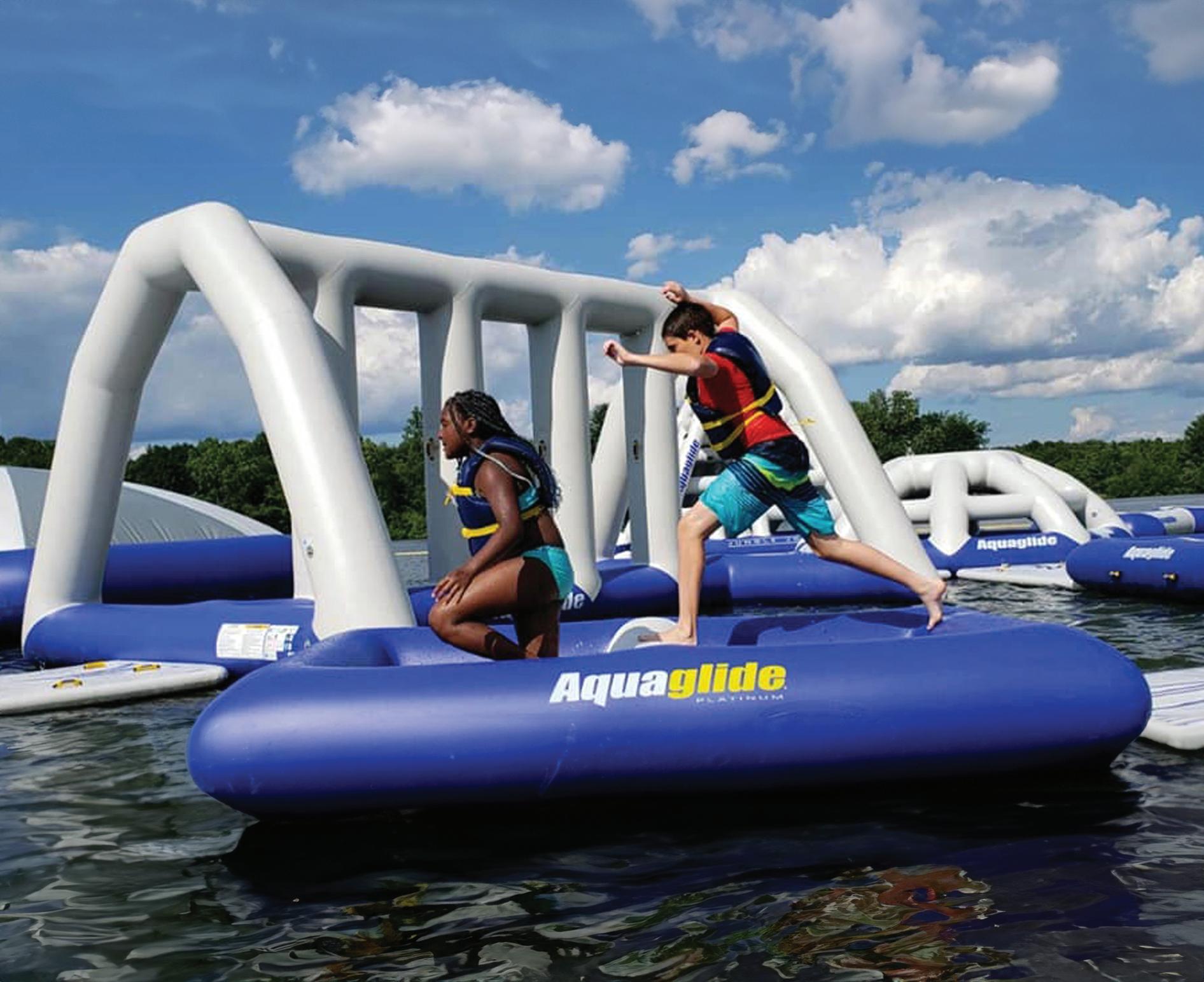 Safely floating and secured on the lake, you can bounce your way over the mighty Neptune, pull yourself across the monkey bars, step over the tricky hurdle or just bomb into the water from anywhere!