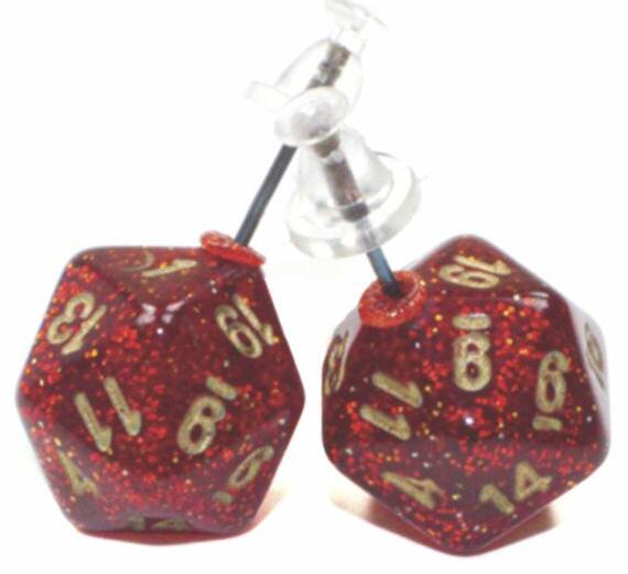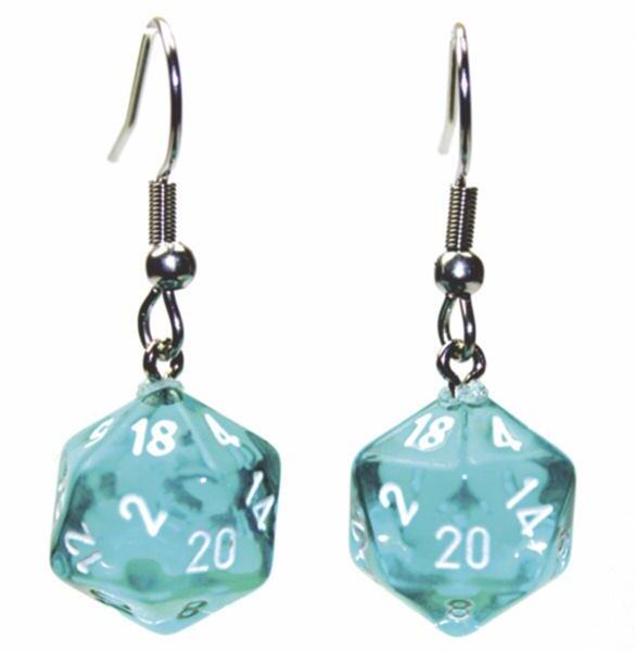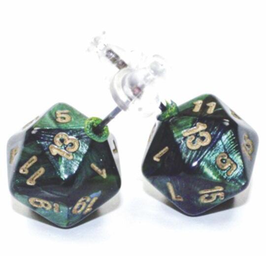 CHX54202 Hook Earrings Translucent Teal Mini d20 Pair $9 98 Chessex mini d20 stainless steel hook earrings. CHX54203 Hook Earrings Marble Green Mini d20 Pair $9 98 Mini d20 stainless steel hook earrings in Marble green
