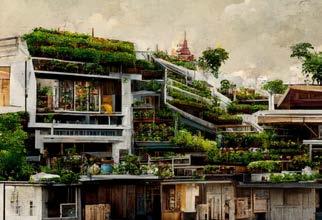 In the specific context of roofs and courtyards, the stable diffusion model emerges as a harbinger of change, exploring their potential to seamlessly blend artificial architecture with nature. Roofs, once mundane structures, transform into canvases for sustainable integration into the urban landscape, manifesting as clusters within living cities. Courtyards, characterized by increasing complexity, layers, and fragmentation, emerge as dynamic structural spaces contributing to the intricate tapestry of the urban fabric, adding depth and functionality to the architectural vision.