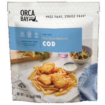 Pub-Style Battered Cod 410777 ORCA BAY 10/16 oz bags Premium wild caught Cod portions are coated in a pub style batter for a light, crispy crunch that pairs perfectly with this mild and flaky fish.